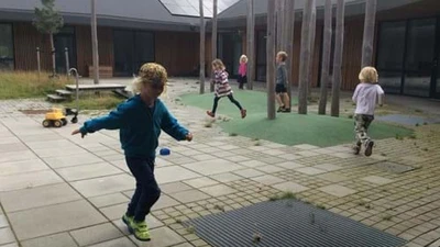 Børnehuset Midgård er centralt beliggende med Kildedamsskolen som nabo på den ene side og med marker til den anden side. Vi er omgivet af en skøn naturlegeplads, med masser af plads til kreativitet. Vi har fx bålhus, højbede, frugtbuske, mooncarbaner, boldbane og flere forskellige legeredskaber. Vores hus er inddelt i små enheder med hver sin indgang og døre mellem stuerne. Vi har flere fælles lokaler med mulighed for fx DGI-lege, malerværksted, indendørs soverum og liggehal under tag.