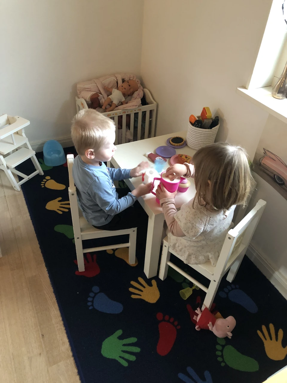 I mit dagplejehjem har børnene mulighed for at lege frit med legetøj og med hinanden og jeg laver aktiviteter med dem - både enkeltvis og i en samlet gruppe.