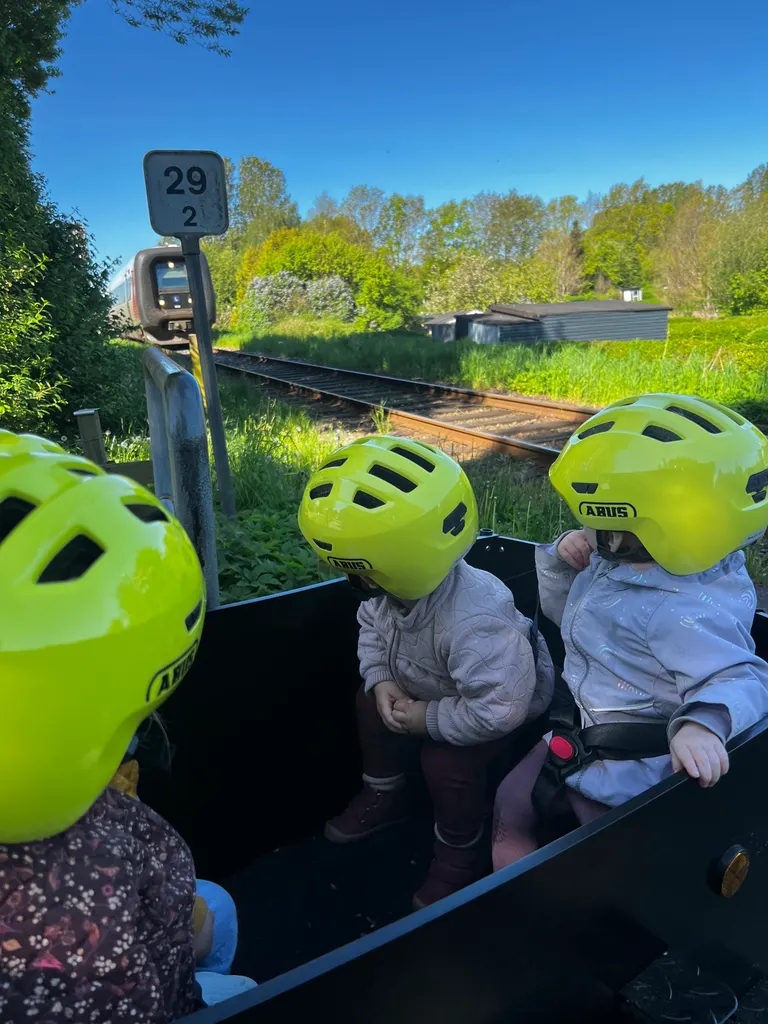 Formiddag: Vi leger og hygger indtil formiddagsmad kl. 9 med brød og frugt. Hvorefter vi laver aktiviteter, går i haven eller tager på tur med barnevognen/ ladcyklen.
