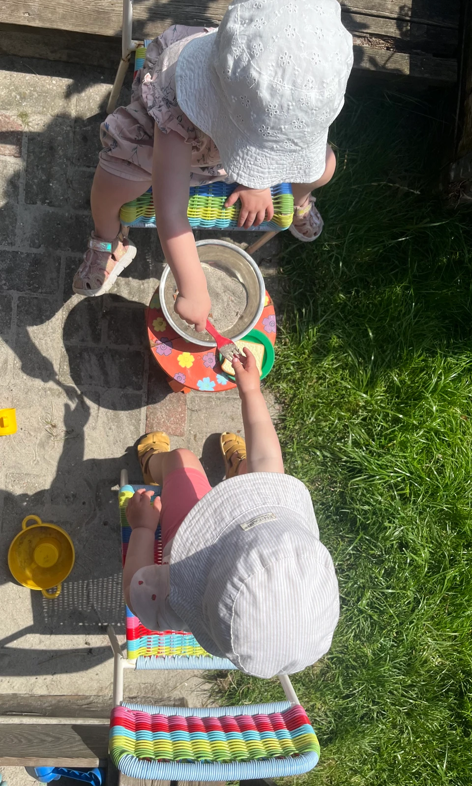 Om eftermiddagen går vi ud i haven igen hvis vejret er til det eller vi leger indenfor.